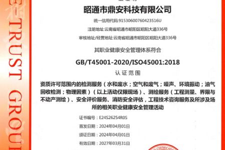 2003年11月10日,昭通市鼎安科技有限公司成立,初始主要從事第三方安全工程技術(shù)服務(wù),經(jīng)多年運營,發(fā)展為多專業(yè)綜合科技平臺,為社會提供多種專業(yè)技術(shù)服務(wù)工作。 現(xiàn)公司注冊資金為1200萬元,公司法定代表人:毛衛(wèi)旭。公司主要業(yè)務(wù):安全評價、安全標(biāo)準(zhǔn)化評審、安全工程技術(shù)服務(wù);環(huán)境監(jiān)測、職業(yè)衛(wèi)生檢測、檢驗;法律訴訟及非訴訟服務(wù);司法鑒定、固定資產(chǎn)投資項目節(jié)能服務(wù);工程咨詢;工程測量測繪;安全教育培訓(xùn)等。是安全生產(chǎn)服務(wù)、安全教育培訓(xùn)機構(gòu),也是環(huán)境監(jiān)測和職業(yè)衛(wèi)生服務(wù)機構(gòu),同時也是綜合的檢測檢驗、綜合科技平臺服務(wù)機構(gòu)。多年來為公、檢、法、司、軍、警、海關(guān)、仲裁、安監(jiān)、工礦商貿(mào)企業(yè)、社會團體及個人提供多專業(yè)技術(shù)服務(wù)。